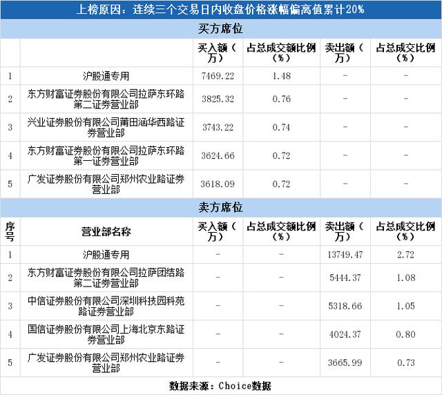 异常区间内沪股通出现在了榜单上,占据了买一、卖一的位置,净卖出6280.25万元,占区间成交总额的1.24%。
