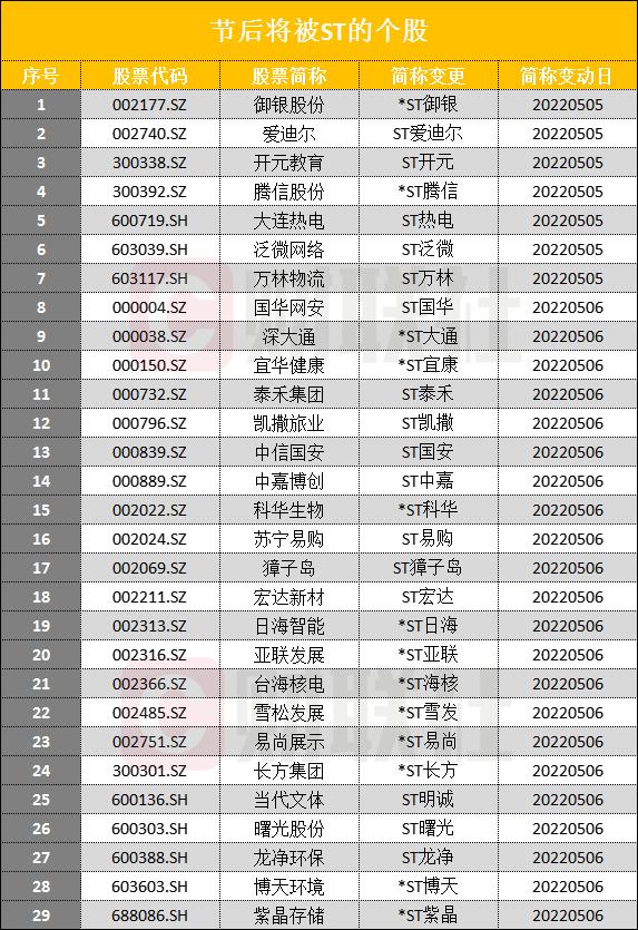 原文标题:天雷滚滚!近30股节后将“披星带帽”还有20家公司或将退市