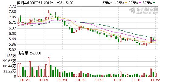 2019年11月22日,英洛华A股开盘5.61元,全日小涨0.36%,股价收报5.61元。自2019年11月20日以来,英洛华收盘价连续三日收于年线(250日均线)之上。