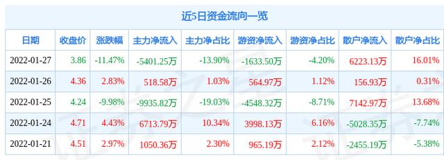 资金流向数据方面,上个交易日主力资金净流出5401.25万元,游资资金净流出1633.5万元,散户资金净流入6223.13万元。近5日资金流向一览见下表: