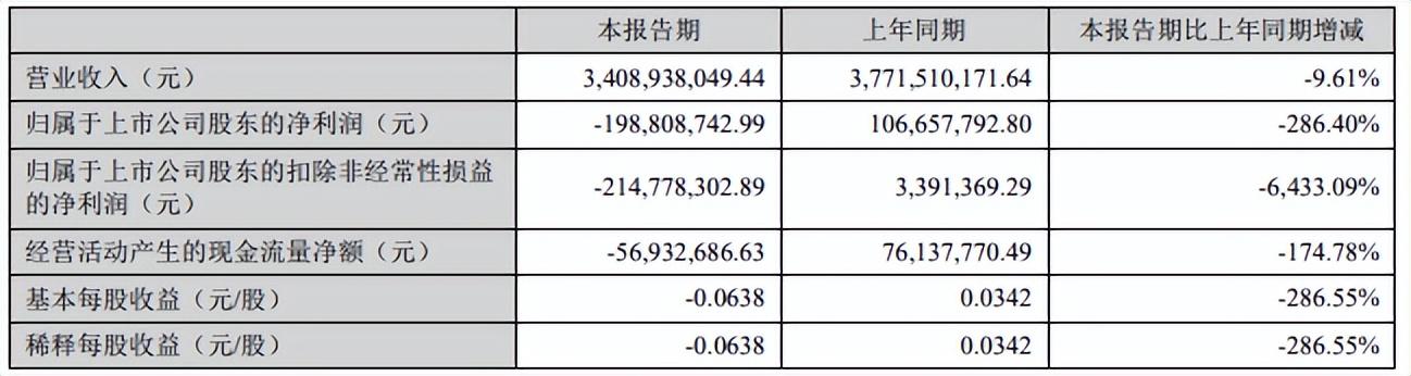 合力泰Q1实现营收34.09亿元,净利润同比由盈转亏