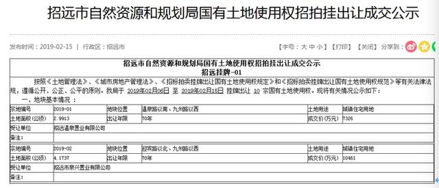 但是根据《招远市自然资源和规划局国有土地使用权招拍挂出让成交公示》,2019年1月温泉路一宗2.9913公顷的住宅用地成交价仅为7326万元、折合每平米仅2449.1元,这相比九州投资有限公司在5年前的同区域商业用地评估价,仅高出了20%左右。