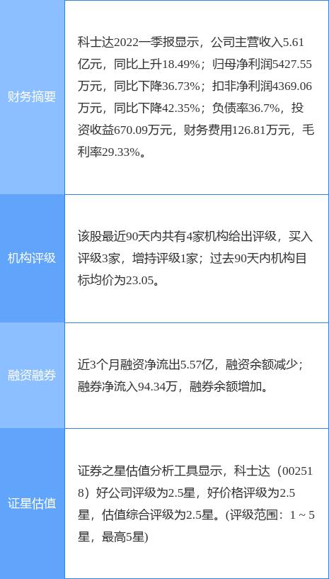 本文摘要:5月19日盘中消息,14点16分科士达(002518)封涨停板。目前价格20.49,上涨9.98%。其所属行业其他电源设备目前上涨。领涨股为科士达。该股为光伏,储能,充电桩概念热股,当日光伏概念上涨3.84%,储能概念上涨1.97%,充电桩… …