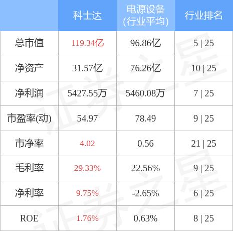 科士达主要指标及行业内排名如下:
