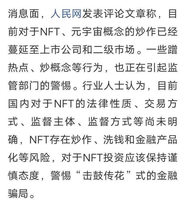 吃瓜群众本人也是一位股民,今天中午休市的时候,人民网发表了一篇元宇宙炒作蔓延到二级市场,一些蹭热点炒概念的行为正受到监管部门警惕的文章。