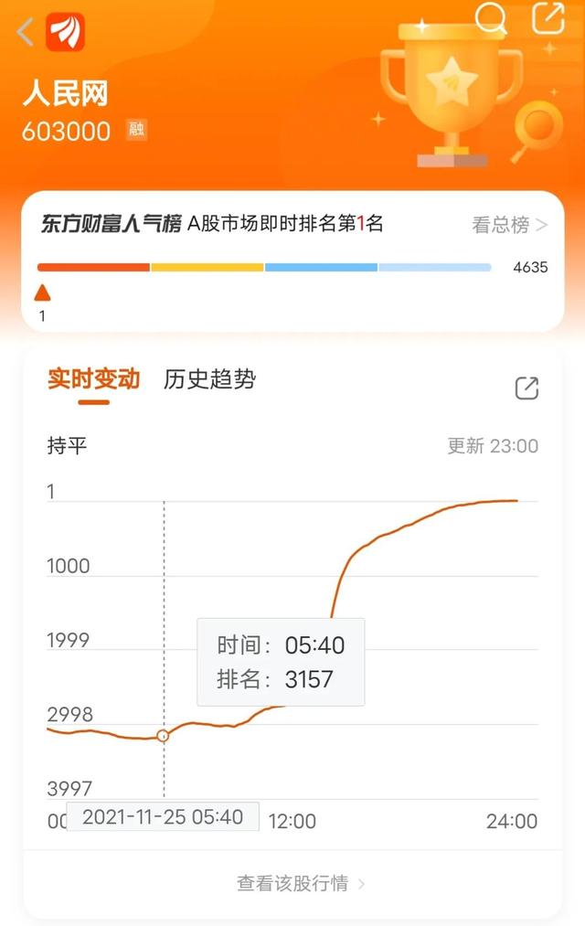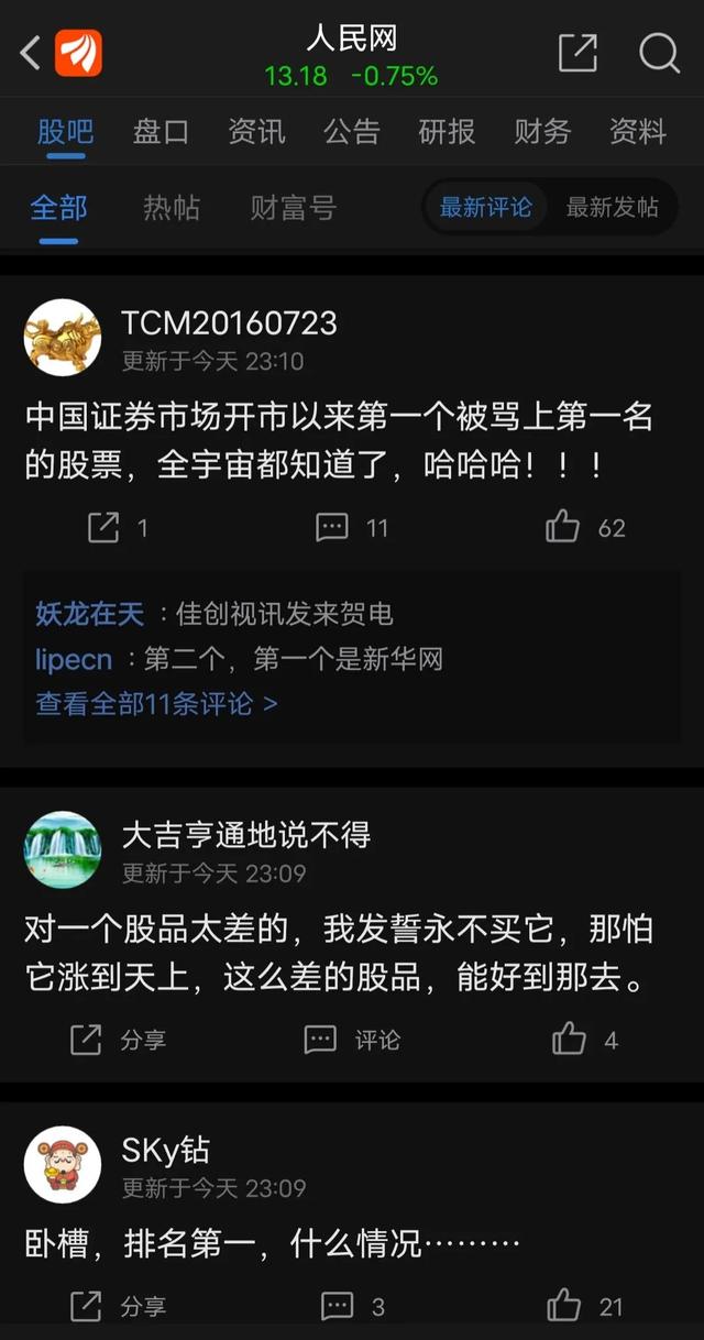 原文标题:什么情况,今天人民网(603000)被股民骂上人气榜第一位