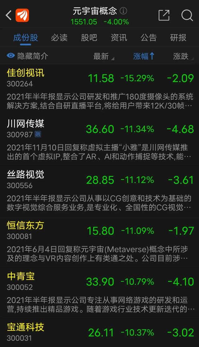 这直接导致下午一开盘,元宇宙概念股直接下挫暴跌。