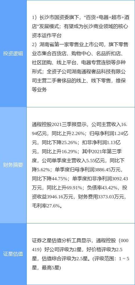 本文摘要:通程控股涨停收盘,收盘价6.2元。该股于9点31分涨停,1次打开涨停,截止收盘封单资金为5067.61万元,占其流通市值1.5%。资金流向数据方面,当日主力资金净流出248.57万元,游资资金净流出510.87万元,散户资金净流入21.2万… …