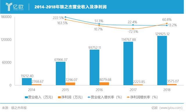 4月23日,银之杰披露2018年年报,营业收入129925.12万元,同比增长13.21%;实现归属于母公司所有者的净利润3575.07万元,同比增长60.76%。