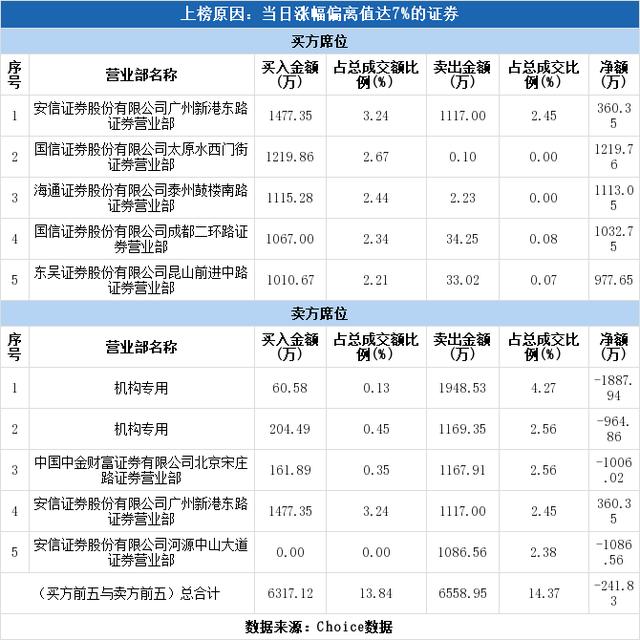原文标题:多主力现身龙虎榜,山东威达涨停(08-31)