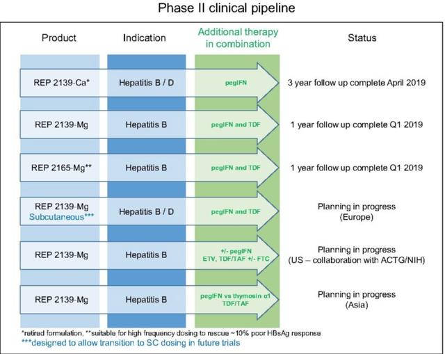 正优化基于NAP的联合治疗方案,以实现尽可能高的SVR率(功能性治愈)。选择第一个NAP候选药物继续发展到NDA(REP 2139)。