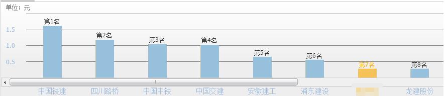 在27家基建市政工程行业公司中,公司的每股收益排行行业第7。而市政建筑工程的前几名, 都是业内鼎鼎有名的央企、国企大佬,比如中国铁建、四川路桥、中国中铁等等。