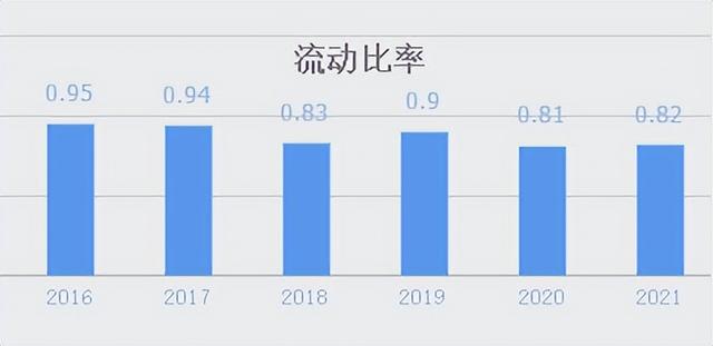 2021年公司的流动比率为0.82,即,流动资产目前能够覆盖82%的流动负债。