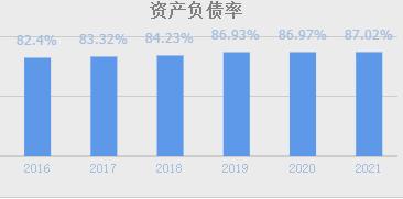 2021年,公司的资产负债率达到了87%,看起来是比较高的。不过,这有部分原因是由于行业特性所决定的。