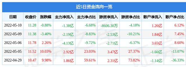 资金流向数据方面,5月10日主力资金净流出1.38亿元,游资资金净流出8606.3万元,散户资金净流入1.26亿元。