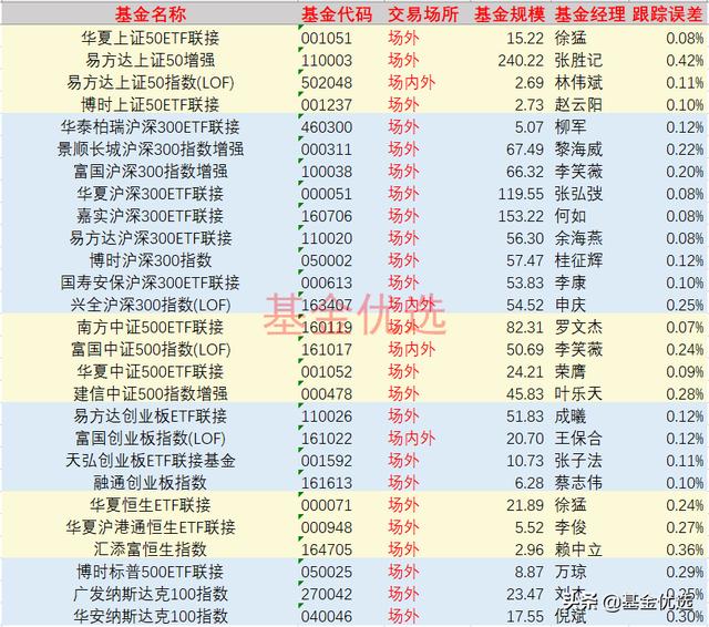 下面就一一介绍对应的宽基指数基金,所选取的基金大部分成立时间较长,规模在2亿元以上。