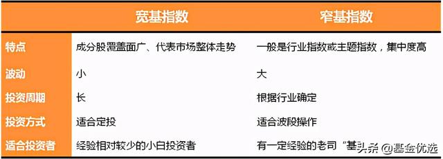 窄基指数:与宽基指数相对应的窄基指数,是除了宽基指数以外的风格指数、行业指数、主题指数等等,一般多是行业指数或者主题基金。相比宽基指数的行业多、股票多,窄基指数行业和个股更为集中。跟踪窄基指数的基金即为窄基指数基金,由于其投资组合相对集中于某一行业或者主题,投资风险就要比宽基指数基金更高。