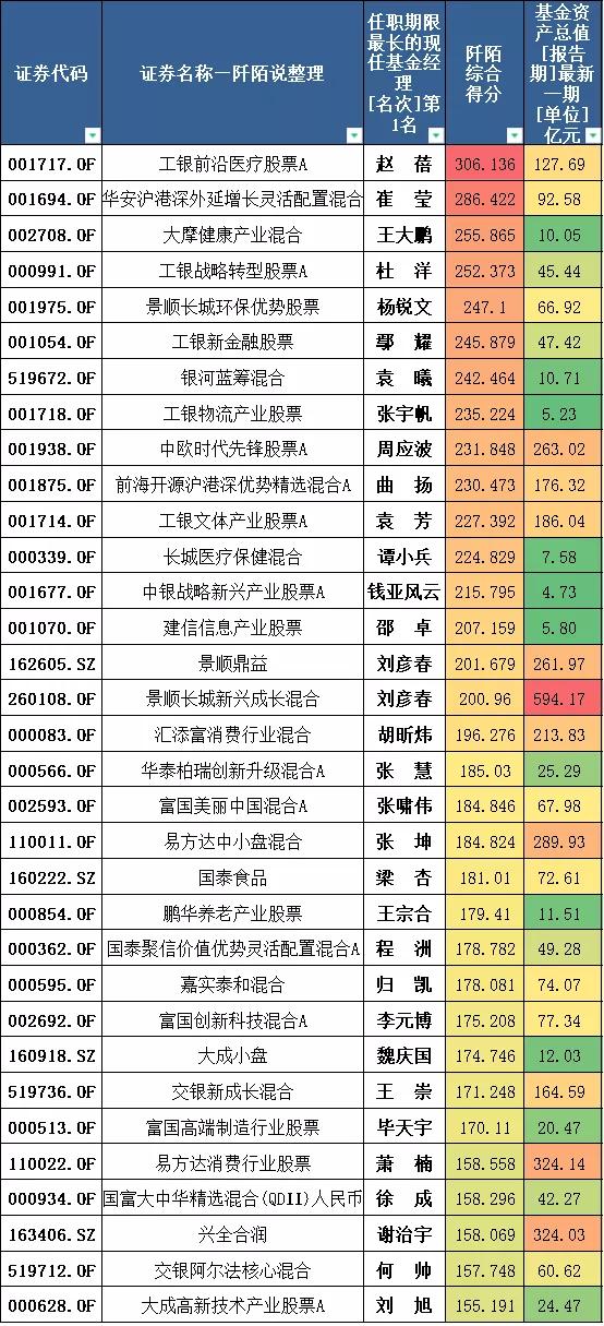如果按近一年、近两年、近三年、近五年的业绩给予一定的权重(我就不公布我的心里具体的公式了),简单统计给予综合得分如下(部分基金经理):排名靠前的有赵蓓、崔莹、王大鹏、杜洋、杨锐文等,其中股票占比不是很高的未能入榜情有可原。