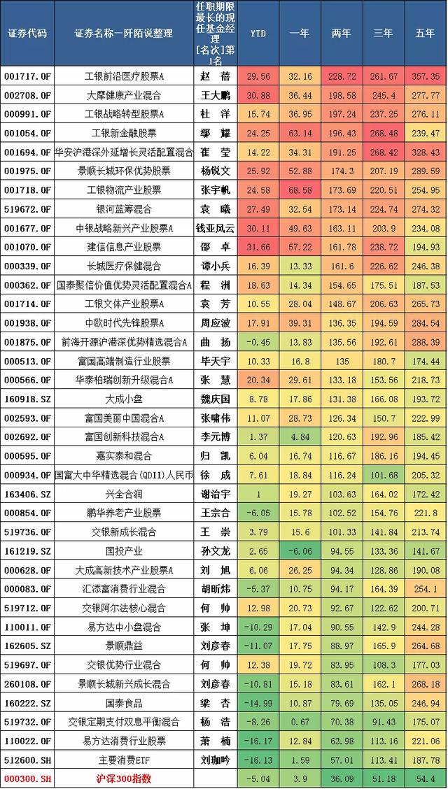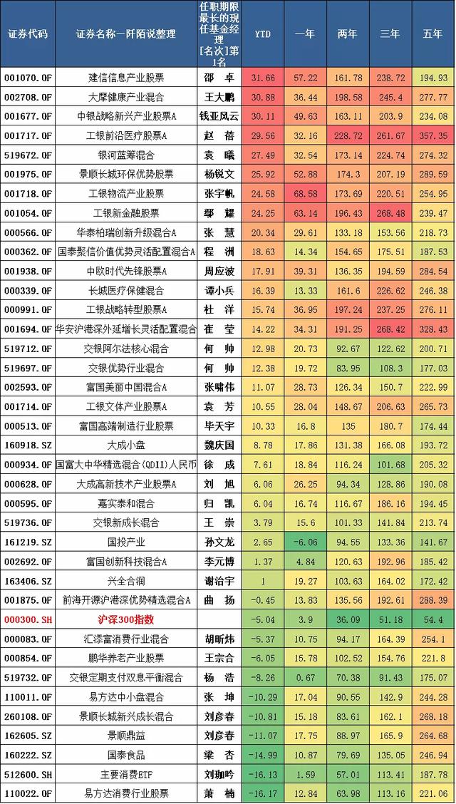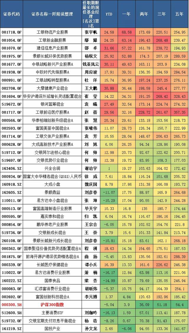 按近一年业绩由高到低排序如下。排名第一的工银张宇帆、鄢耀,都超过60%,排名垫底的胡昕炜、李元博、杨浩、孙文龙,尤其是杨浩和孙文龙,近一年玩了个寂寞。