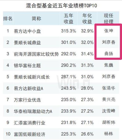 混合型基金业绩更胜一筹,前十最低都是225.3%,最高更是高达315.3%。