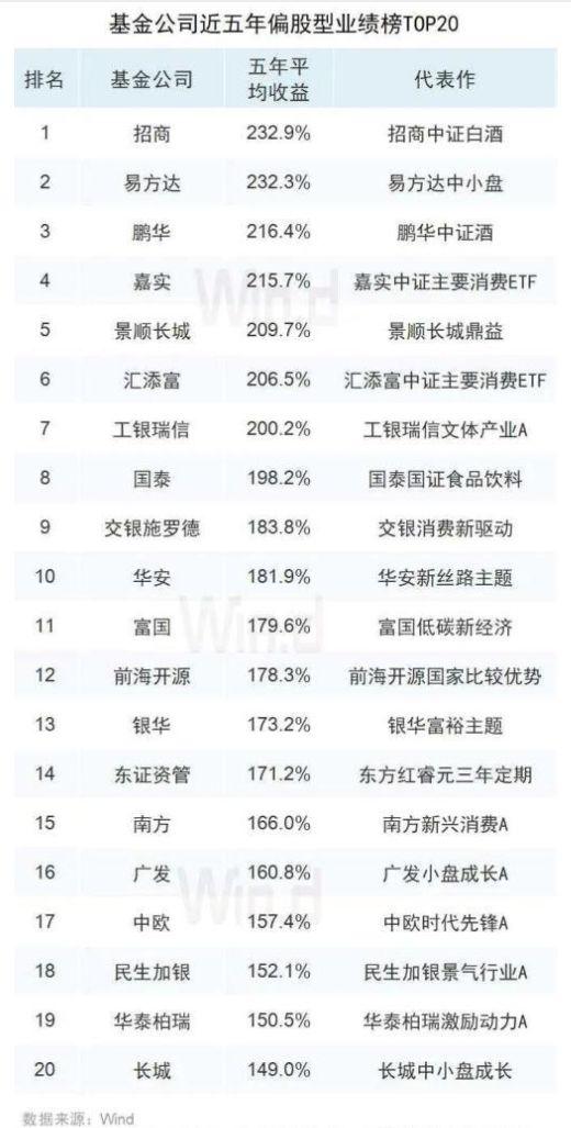 本文摘要:2016至2020五年间,32只基金总回报超200%。普通股票型基金的平均回报95.3%,其中易方达消费行业总回报超300%;指数股票型基金平均回报47.2%,其中招商中证白酒大涨超500%。相比而言,上证指数下跌了1.87%。看完这个你知… …