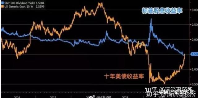 这图出自交银研究部负责人洪灏,图中显示,投资美国十年期国债的收益率已经高于标普股息收益率。