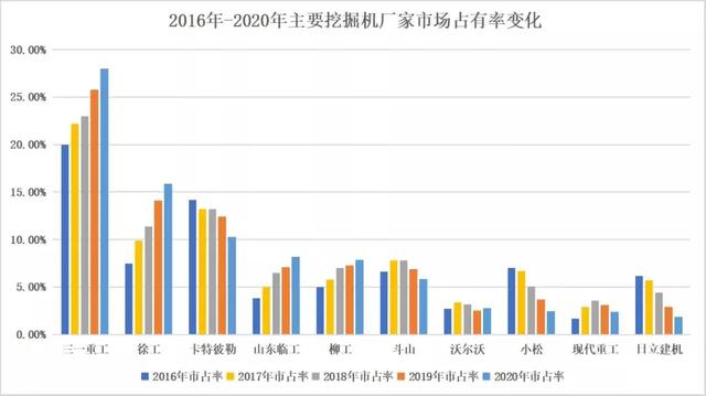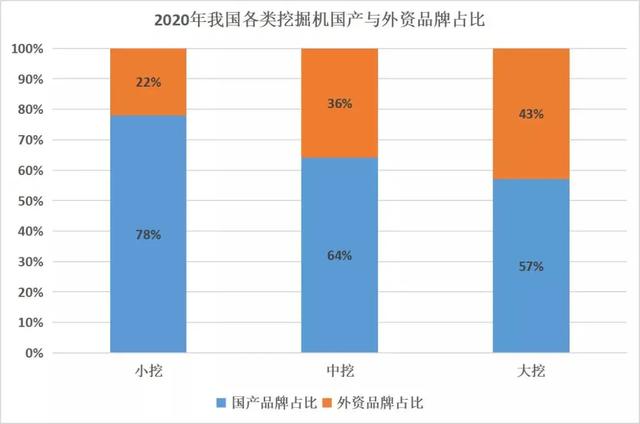 十年来,国产挖掘机品牌,逐渐行走在奋进之路上。从设计到工艺,从发动机到泵阀,国产品牌都在迎头赶上;从市场开拓到品牌营销,从丧失大半市场到抢回70%的市场份额,国产品牌不断开疆拓土、攻城拔寨。国产挖掘机品牌正在强势崛起,这种崛起不只是量的崛起,更是质的崛起。不再是小挖和局部市场的部分崛起,而是全机种和经营全方位的全面崛起。2020年,国产品牌在小挖市场占有率为78%,中挖占有率为64%,大挖占有率为57%。