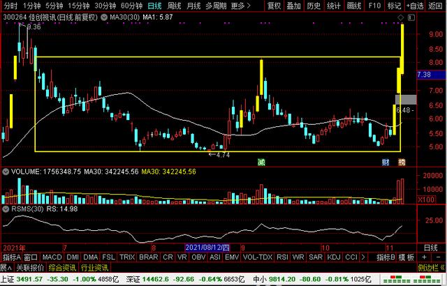 从目前来看,佳创视讯从底部启动,已经连续三个涨停,且突破横盘整理区时,成交量明显放大。