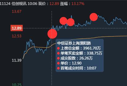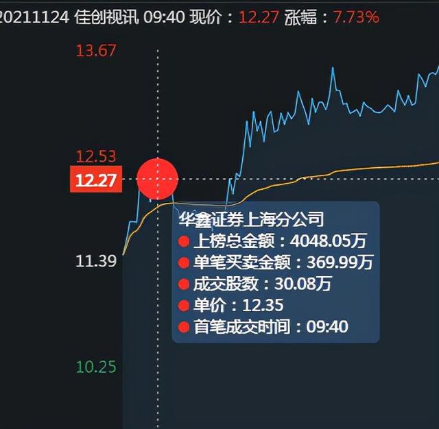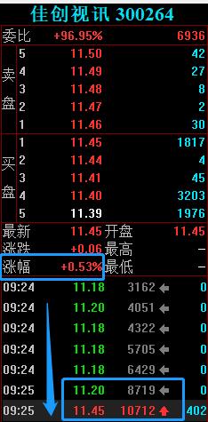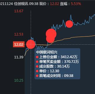 昨天11.23日,佳创视讯已经有资金入场,但没有冲板,呈现冲高回落的走势。