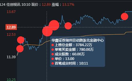 9:40分,华鑫上海也在12.35价位买入3008手,股价上涨到9%附近,早上第一波拉升,4大主力都现身了。