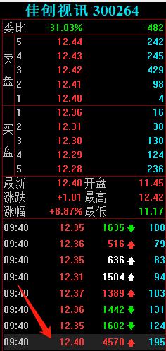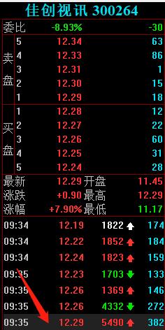 9:35分,劳动路也往12.29价位买入2500手。(思考:这时中文在线高开低走,所以劳动路是开盘就处理完了中文在线,从而转战佳创视讯?)
