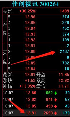 10:07分,赵老哥大单现身后,他的老基友孙哥来了,往12.90价位买入2626手,股价已经飙升到13%以上,第二波拉升是以赵老哥为核心。