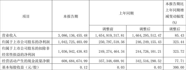 本文摘要:中证财讯 和邦生物(603077)4月26日披露2022年第一季度报告。报告期内公司实现营业总收入30.86亿元,同比增长85.43%;归母净利润10.43亿元,同比增长323.44%;扣非净利润10.37亿元,同比增长323.72%;经营… …