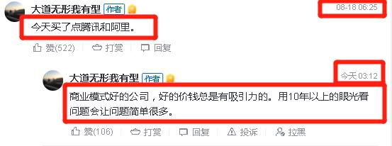 到2018年10月,段永平则出手买腾讯了。当时有网友指出,估摸着大道要出手腾讯了。