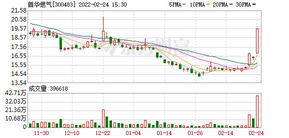 深交所2022年2月24日交易公开信息显示,首华燃气因属于日涨幅达到15%的前5只证券而登上龙虎榜。首华燃气当日报收19.56元,涨跌幅为20.00%,换手率18.42%,振幅16.93%,成交额7.41亿元。