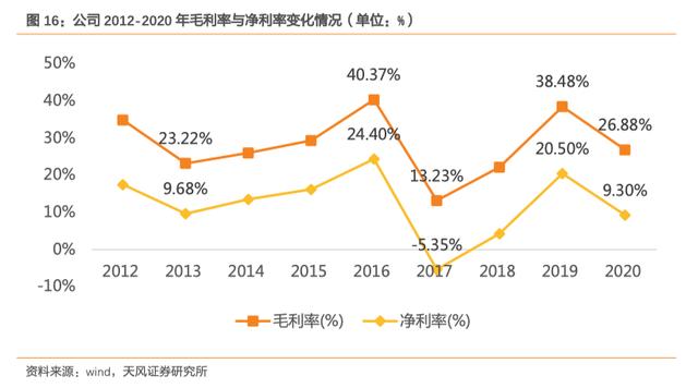 2020 年公司毛利率和净利率相比于 2019 年出现回落主要在于两方面因素: