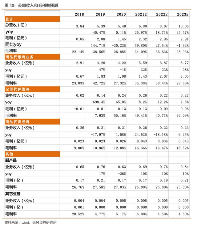 2、 根据公司过往商品代雏鸡的销售数据来判断,我们预计公司 2021-2023 年商品代雏鸡的销售量仍然可以保持较高增速增长。