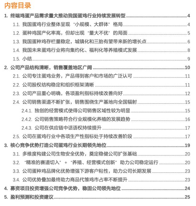 通过上述优势的不断叠加,最终使得公司的“拳头产品” 商品代雏鸡市场份额 不断增长, 从而形成规模优势。截止到 2020 年末,公司的商品代雏鸡国内市场占有率已达到 12.52%, 业务规模跻身行业前列。相比于中小规模竞争对手,公司在抵御行业波动风险的能力上更强,公司可以依托自身较大的养殖孵化生产规模,实现因地制宜的生产布局、高效的技术设备推广及灵活的资源调配。例如在行业周期的低谷期,公司依托广泛覆盖的销售网络、 良好的供应商关系,维持公司采购与销售业务的正常运行,实现公司的可持续发展。同时 ,公司养殖规模大使得公司在保障经营效益的基础上,实现多批次祖代蛋种鸡引进鸡养殖,以应对上游供应因突发因素带来的不利影响。