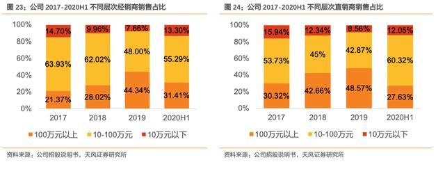 (注:2020 年 H1,由于部分年采购额超 100 万元的客户,上半年采购量尚未达到 100万,导致其计入 10-100 万元或 10 万元以下,因此变动趋势与其他年度存在差异。)