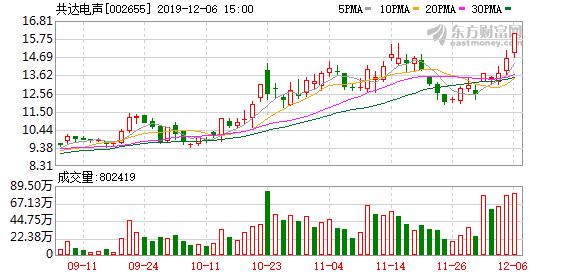 本文摘要:深交所2019年12月6日交易公开信息显示,共达电声因属于当日涨幅偏离值达7%的证券而登上龙虎榜。共达电声当日报收16.05元,涨跌幅为10.01%,偏离值达9.13%,换手率22.29%,振幅9.94%,成交额12.49亿元。12月6日席… …