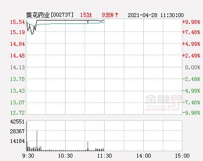 金融界网4月28日消息,今日葵花药业开盘报15.53元,截止11:30分,该股涨9.98%报15.54元,封上涨停板。