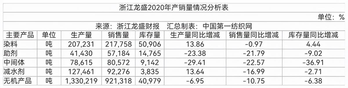 报告期内,染料和中间体业务已成为浙江龙盛核心利润的来源,2020年公司全球染料销量21.78万吨,中间体销量8.06万吨。