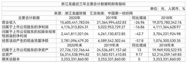 财报显示,2020年.浙江龙盛实现营业总收入156.05亿元,同比下降26.96%,实现归属于母公司股东的净利润41.76亿元,同比下降16.86%。