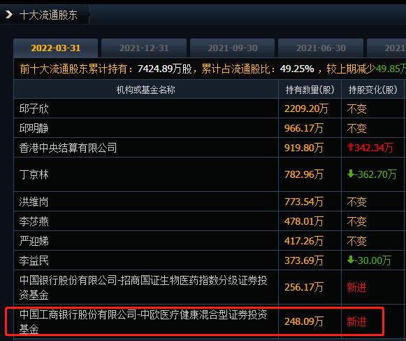 根据万泰生物一季报显示,素有“医药女神”之称的葛兰率中欧医疗健康混合基金一季度新进公司前十大流通股东,当前持股248.09万股,占流通股比例1.65%。