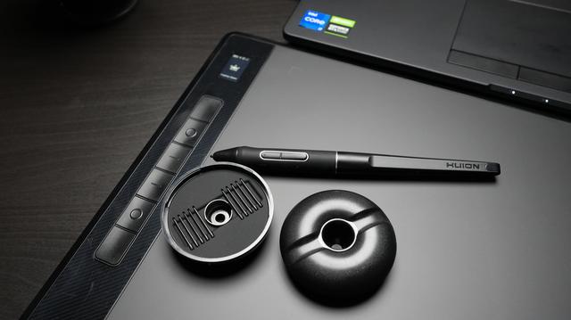 在上述尺寸中,有一个13.6 x 8.5英寸的工作区域,完全功能齐全,对笔的输入敏感。该表面是深灰色哑光金属防指纹表面,即使长时间使用,仍保持干燥和无污迹。平板电脑配有数字笔,无需电池即可使用。这款轻便的笔在远端很薄,逐渐变大,以便更好地抓握尖端。这支笔类似于Huion平板电脑的旧版本,还带有10个额外的笔尖,存储在笔架内。总体而言,这款笔、塑料或毛毡笔尖的选择以及平板电脑有效区域的哑光表面的组合提供了与笔和纸非常相似的绘图体验。