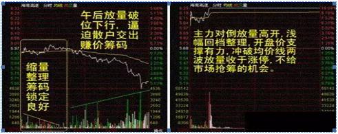 “后量压前量”是主力拉抬的兵力,是股价涨升的动力。成交量变化的分析法不仅可以用于日线图,在周线和分时图上的运用更为普遍,关键在于用不同的分析得出来的结论只能适用于相应的时段,比如日线图上看到的底部常常是中期底部,随后展开的升势可能持续一个月或几个月,而分时图上的底部就只能支撑十几个小时了,主 力将价格拉抬的过程中股价要不断的创出新高,为了吸引更多的跟风盘他必须做得让股价上涨非常完美,所以基本的量价配合就必须满足,如创新高的量要大于前一 个高点的量,先见量后见价,说明股价还会继续上涨,基于此主力在做盘中,当股价要突破前面的高点时就会打出大单让成交量大于前面高点成交量,这样良好的量 价配合才会吸引更多的人进来,在强势战法中,分时图选股特别看重成交量的变化,其中最为经典的量分析方法就是“后量压前量”。