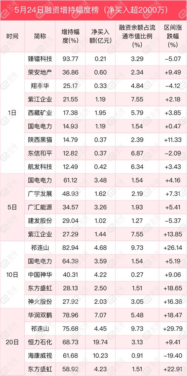 从增减持幅度来看,单日净买卖超2000万元以上的个股中,臻镭科技、荣安地产、翔丰华获融资增持幅度居前,分别为93.77%、36.86%、25.17%。