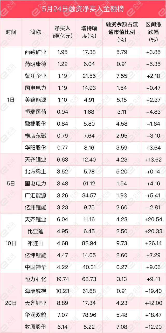 从买卖金额来看,西藏矿业、药明康德、紫江企业获融资净买入金额居前,分别为1.95亿元、1.22亿元、1.19亿元,增持幅度分别为17.38%、6.04%、21.55%。