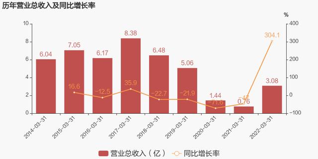 亚邦股份于2022年4月27日披露一季报,公司2022年一季度实现营业总收入3.1亿,同比增长304.1%;实现归母净利润-4812.9万,上年同期为-9403.1万元,亏损幅度收窄。