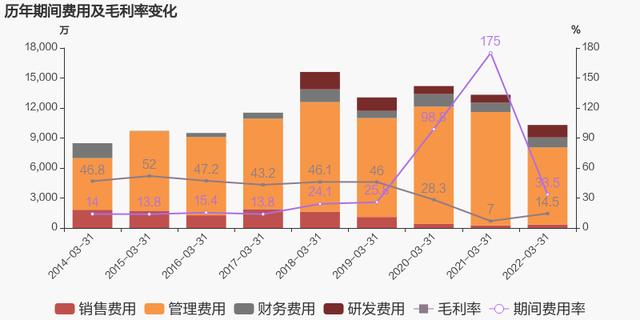 公司2022一季度营业成本2.6亿,同比增长271.3%,低于营业收入304.1%的增速,导致毛利率上升7.6%。期间费用率为33.5%,较去年下降141.5%。经营性现金流大幅下降104.2%至-1.4亿。
